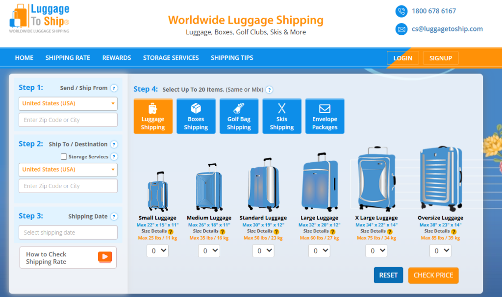 Use the intuitive LuggageToShip shipping calculator to get instant quotes and book your shipment in minutes.