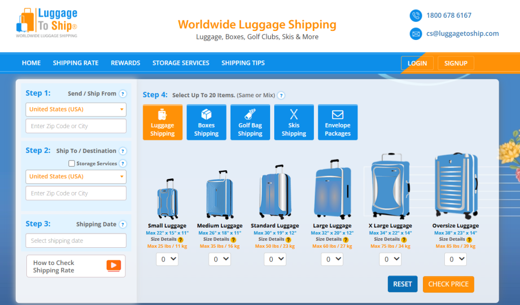 LugLess (now part of the Luggage Forward family) is essentially a pricing aggregator for companies that ship luggage via national carrier networks. You pay only for the options you use — no doorstep pickup? Save money. Don’t need extra insurance? Save more. It’s bare-bones, but if you’re near a carrier drop-off and you’re fine with basic service, nothing beats it on price.
