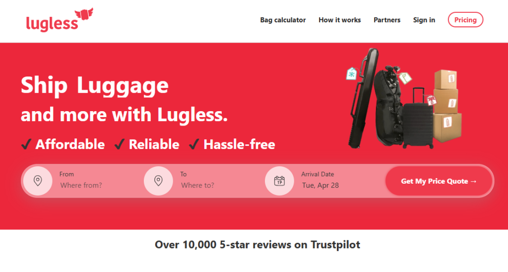 4. LugLess — Cheapest Luggage Shipping Service for US Trips
